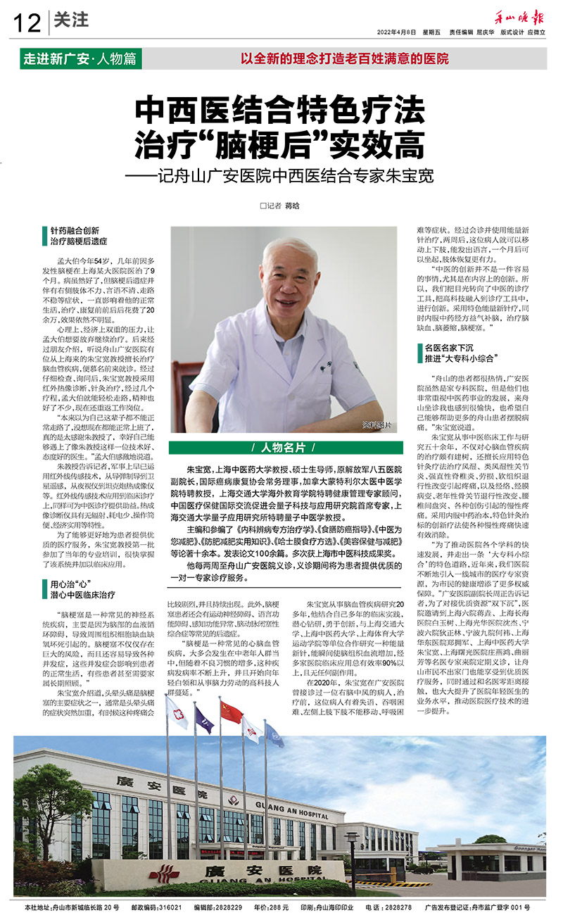 廣安人懷揣著對于醫(yī)療的敬畏和對舟山人的大愛,將以更加昂揚的姿態(tài)和海納百川的胸懷,不斷把學科建設和醫(yī)療技術(shù)水平推向更高的境界,服務舟山、造福社會。
