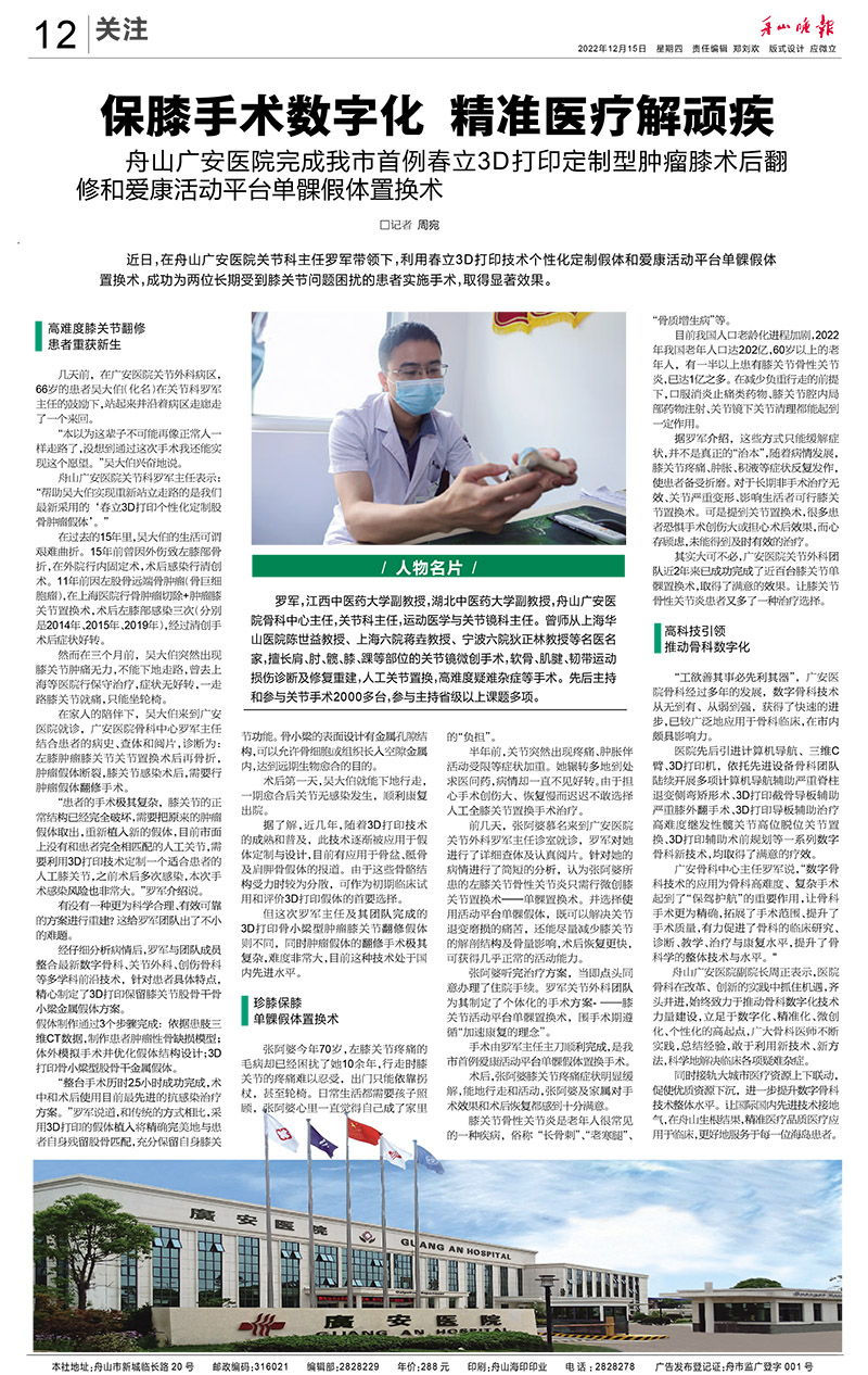 廣安人懷揣著對于醫(yī)療的敬畏和對舟山人的大愛,將以更加昂揚的姿態(tài)和海納百川的胸懷,不斷把學科建設和醫(yī)療技術水平推向更高的境界,服務舟山、造福社會。