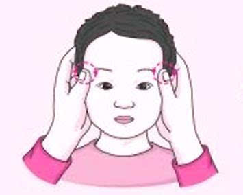 ?。ㄒ唬⒊S猛颇檬址ǎ洪_天門100次、推坎宮100次,揉太陽穴50次,清肺經(jīng)300次、清天河水300次。