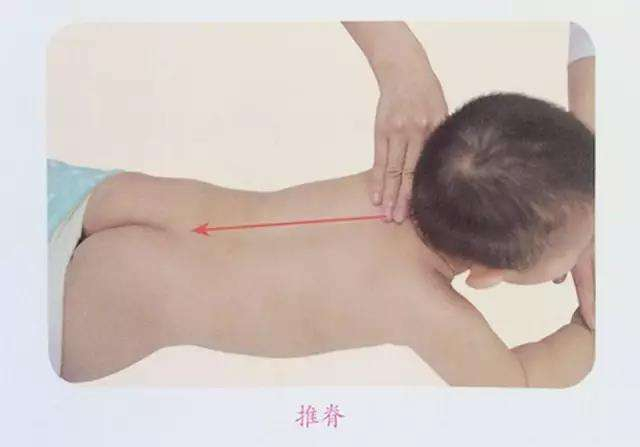 (三)、由風熱引起的發(fā)熱,需要在常用手法的基礎上外加:推脊100次(用右手食、中二指面,自上而下從大椎至長強直推)